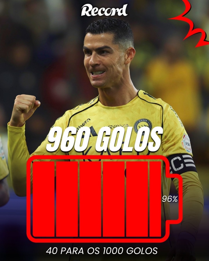01月22日讯 沙特联第17轮,利雅得胜利2-1客胜达马克,C罗攻入个人生涯第960球,距离他梦寐以求的千球里程碑仅差最后40球!